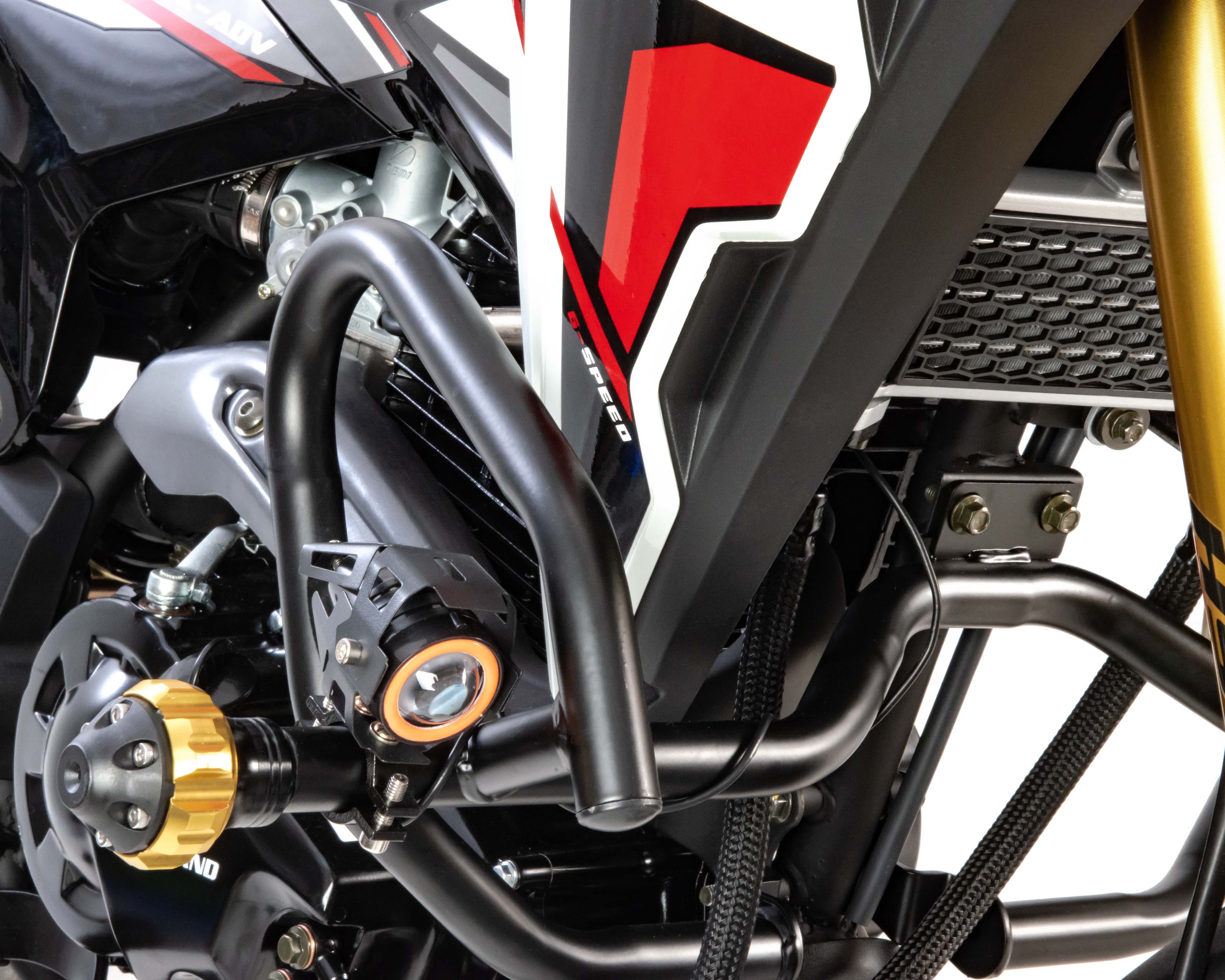 выхлопом и LED оптикой с возможностью переключения между ближним и дальним светом. .